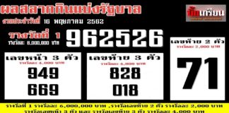 ผลสลากกินแบ่งรัฐบาล งวดประจำวันที่ 2 พฤษภาคม 2562
