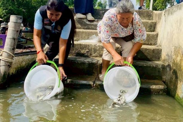 นายยุคล เหมบัณฑิต ประมงพื้นที่กรุงเทพมหานคร กล่าวว่า การปล่อยปลานักล่าเป็นหนึ่งในมาตรการสำคัญของกรมประมงในการควบคุมและลดจำนวนปลาหมอคางดำ โดยเฉพาะ ปลากะพงขาว ซึ่งถือเป็นปลาดั้งเดิมในแหล่งน้ำของชุมชน และสามารถกำจัดลูกปลาหมอคางดำได้เป็นอย่างดี กิจกรรมการปล่อยปลานักล่าครั้งนี้เกิดขึ้นจากความร่วมมือของทุกภาคส่วน ทั้งภาครัฐ เอกชน และชุมชนในพื้นที่ โดยลูกพันธุ์ปลากะพงขาวที่ปล่อยในวันนี้ 10,000 ตัวได้รับการสนับสนุนจากซีพีเอฟ ขณะที่ชุมชนและพี่น้องเกษตรกรได้ร่วมกันคัดเลือกแหล่งน้ำที่เหมาะสมในการปล่อยปลาสองจุด ได้แก่ บริเวณคลองหน้าวัดลูกวัว และศูนย์เรียนรู้แสมดำ