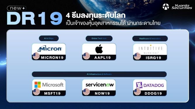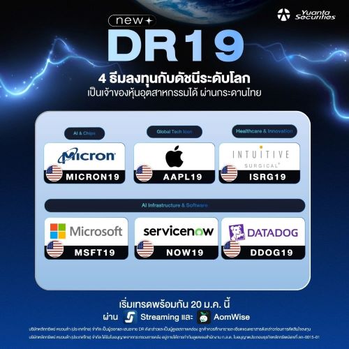 ตลาดหลักทรัพย์แห่งประเทศไทย รับจดทะเบียนตราสารแสดงสิทธิในหลักทรัพย์ต่างประเทศ (DR) 6 หลักทรัพย์ใหม่ อ้างอิงหุ้นชั้นนำในตลาดหลักทรัพย์แนสแด็ก (NASDAQ) และตลาดหลักทรัพย์นิวยอร์ก (NYSE) ออกโดย บริษัทหลักทรัพย์ หยวนต้า (ประเทศไทย) จำกัด (Yuanta) เริ่มซื้อขายในตลาดหุ้นไทย 20 มกราคม 2569