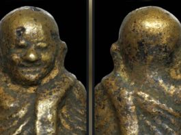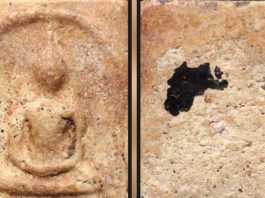 มาดูปิดตาวัดทองยันต์หน่องวันนี้เนื้อเหลืองเก่าจัด คราบขี้เบ้าดำ มีให้เห็นในซอกแขน ในยันต์เก่าจัดเป็นธรรมชาติ ยันต์ต้องเดินเส้นสายไม่ขาดเหมือนเส้นขนมจีนม้วนกลมไปตลอด แบบนี้ใช่เลย จุดจ่ายตังค์ ด้านก้น นอกจากสองมือสอดประสานรองก้นแล้ว รอบสองมือ จะมีร่องรอยแต่งชนวนบางๆ ถ้ามีรอยตะไบหนัก หรือรอยแต่งไม่เรียบร้อย ไม่เก่าเป็นธรรมชาติรอยเหี่ยวย่นไม่มี ไม่ดีนะเธอ
