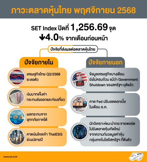ภาวะตลาดหลักทรัพย์ไทยเดือนพฤศจิกายน 2568