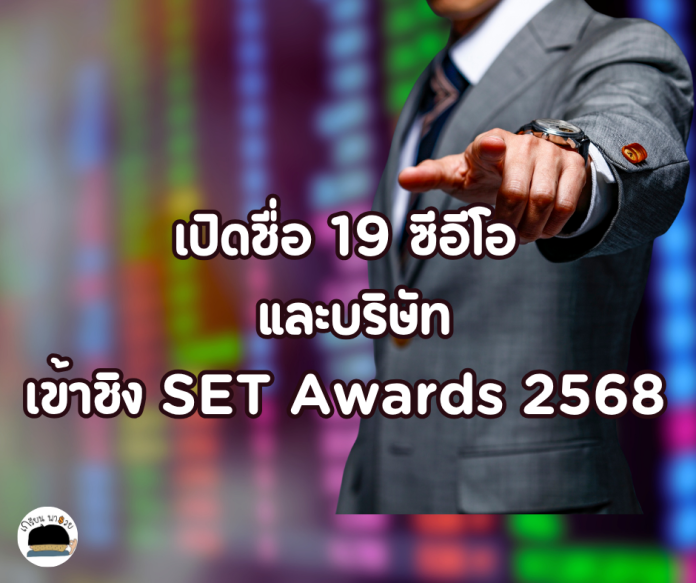 ตลาดหลักทรัพย์แห่งประเทศไทย ร่วมกับวารสารการเงินธนาคาร ยกระดับคุณภาพตลาดทุนไทย สนับสนุนการเติบโตอย่างยั่งยืน จัดงาน SET Awards ประจำปี 2568 เชิดชูองค์กรและผู้นำธุรกิจที่มีความโดดเด่น โดยปีนี้มี 19 ซีอีโอเข้าชิงรางวัล CEO Awards และ 92 บริษัทเข้าชิงกลุ่มรางวัล Business Excellence และ 45 บริษัทเข้าชิงกลุ่มรางวัล Sustainability Excellence สะท้อนถึงความสามารถ ความแข็งแกร่ง และการปรับตัวขององค์กรท่ามกลางความท้าทายรอบด้าน และความมุ่งมั่นในการสร้างการเติบโตอย่างยั่งยืนของภาคธุรกิจไทย ประกาศผลและมอบรางวัล 30 ต.ค. นี้