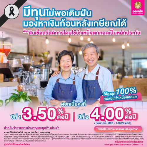 โปรแรงเอาใจวัยเกษียณ จากออมสิน ด้วยสินเชื่อสวัสดิการโดยใช้บำเหน็จตกทอดเป็นหลักประกัน