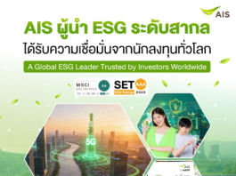 AIS ผู้นำธุรกิจยั่งยืนตัวจริง บ.โทรคมนาคมไทยรายเดียวที่ได้เรทติ้ง ESG ระดับสูงจาก MSCI และตลาดหลักทรัพย์ฯ