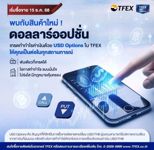 TFEX เปิดซื้อขาย USD/THB Options เครื่องมือใหม่ใช้จัดการค่าเงิน เริ่ม 15 ธ.ค.