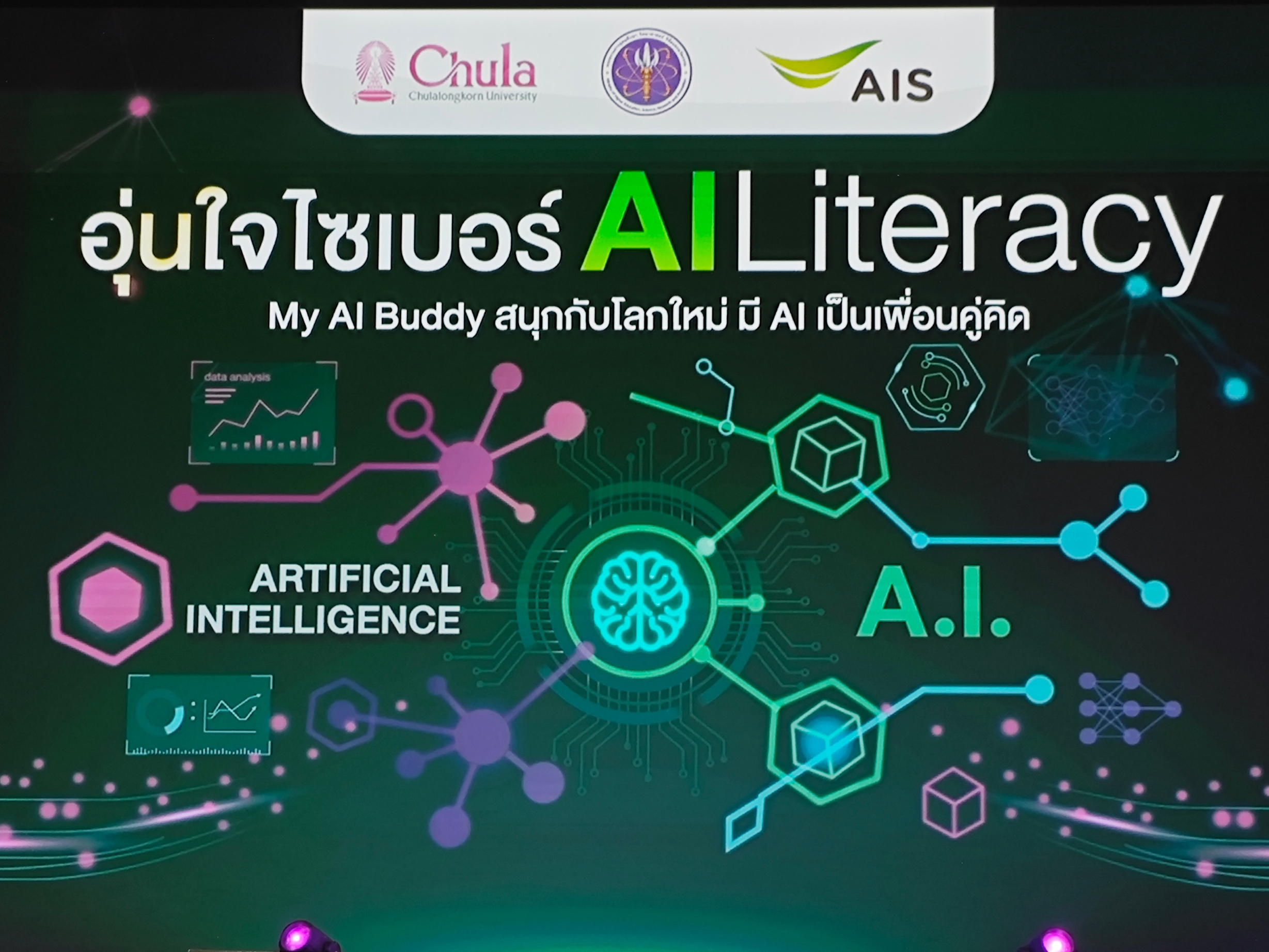 AIS ร่วมกับกระทรวงการอุดมศึกษา วิทยาศาสตร์ วิจัยและนวัตกรรม (อว.) และจุฬาลงกรณ์มหาวิทยาลัย เปิดตัวคอร์สเรียน “อุ่นใจไซเบอร์ : AI Literacy” สื่อการเรียนรู้ในรูปแบบดิจิทัลที่ออกแบบมาเพื่อยกระดับความรู้และทักษะด้านปัญญาประดิษฐ์ (AI) ของคนไทย พัฒนาโดยคณาจารย์ผู้เชี่ยวชาญด้าน AI จากหลากหลายสาขา ครอบคลุมตั้งแต่ความหมายของ AI การประยุกต์ใช้ในชีวิตประจำวัน ไปจนถึงการใช้งานอย่างปลอดภัย สร้างสรรค์ และมีจริยธรรม โดยมี อว. รับรองมาตรฐานเนื้อหา นอกจากนี้ ยังอยู่ระหว่างการต่อยอดหลักสูตรให้นิสิตนักศึกษาสามารถสะสมชั่วโมงการเรียนรู้จากคอร์สดังกล่าว เพื่อนำไปเทียบเป็นหน่วยกิตได้ในอนาคต ศาสตราจารย์